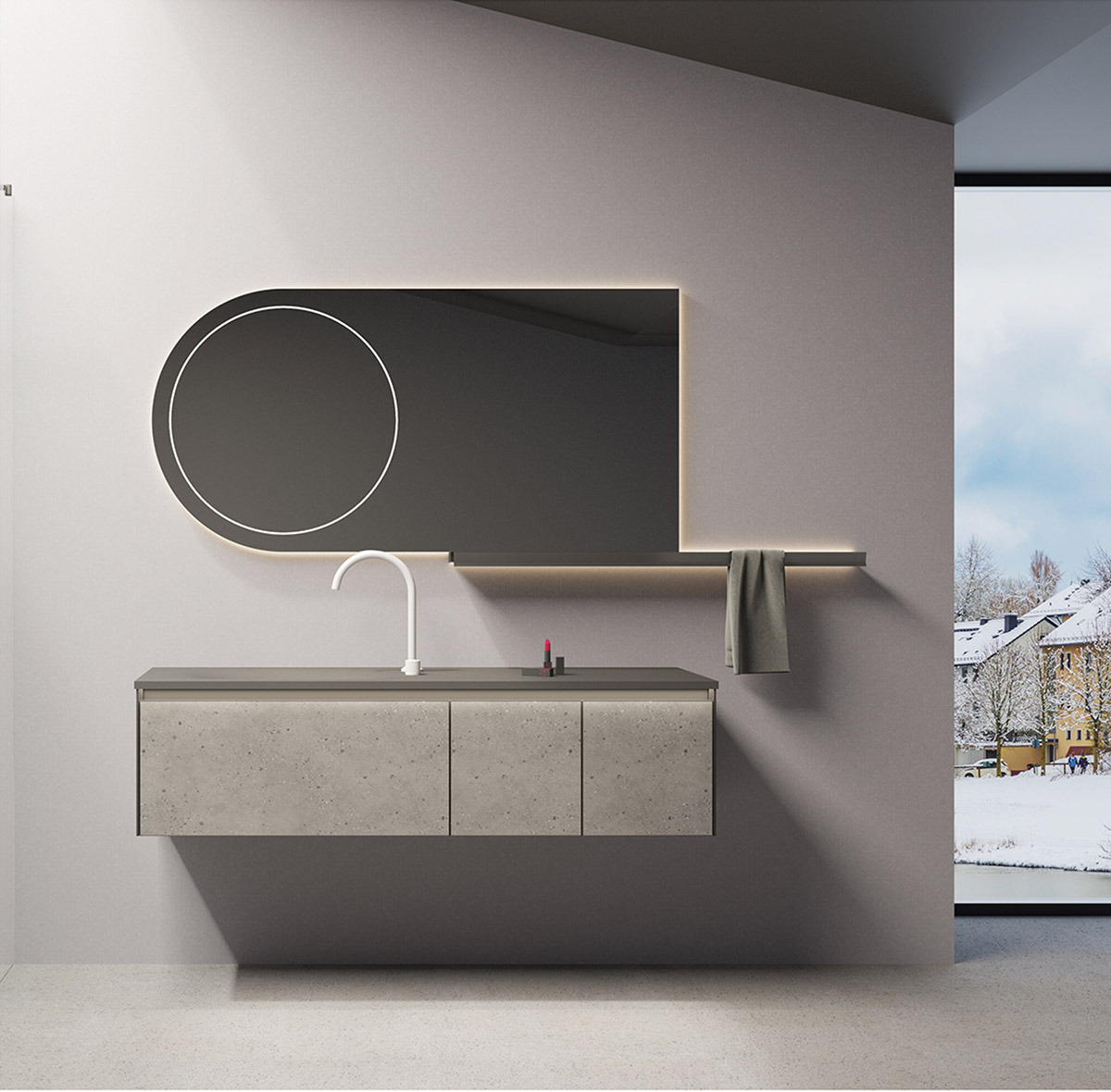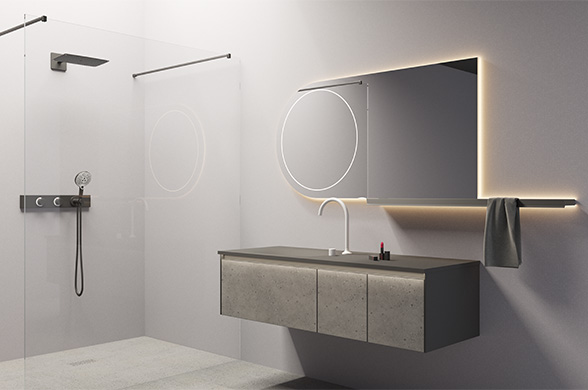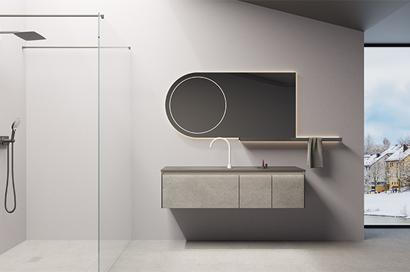 柜体:高级灰免漆板+朗生水磨石面板