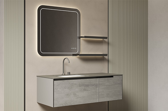 柜体材质:高级灰免漆板+朗生水磨石面板